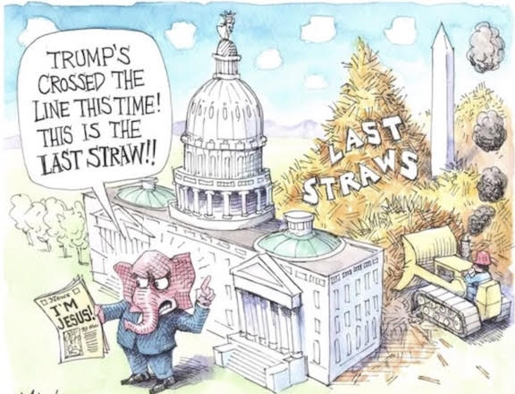 And continuing to vote that way as long as it takes for the Republican Party to regain its footing as a party of real facts, not alternative facts, with leaders like Liz Cheney, Mitt Romney, and Chris Christie (to take three of the all-too-few examples) rather than Trump, Giuliani and the Pillow Guy (to take three of the all-too-numerous), who are willing to defy the strongman who, even as we speak, is continuing his attempted overthrow of democracy.